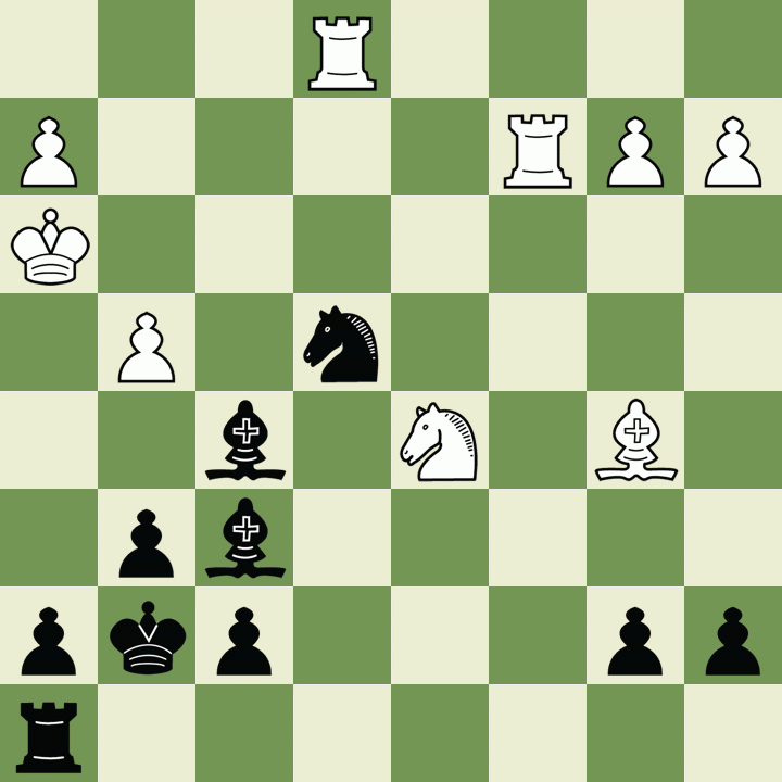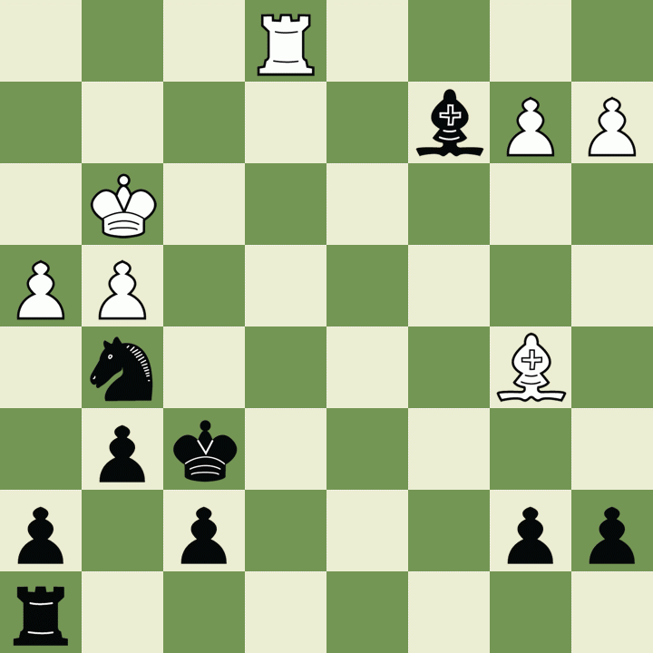 axb4 Qxb4+ 3. Bc3 Bxe5 4. Bxb4 Bxa1 5. Kd2 Kg7 6. Bc3+ Bxc3+ 7. Kxc3 Kf6 8. Kc4