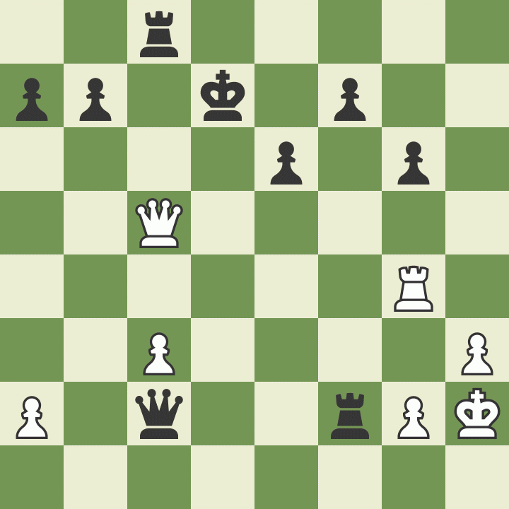 [FEN "r7/pp1k1p2/4p1p1/2Q5/6R1/2P4P/P1q2rPK/8 b - - 0 26"]