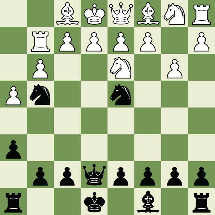 axb2 3. Qxb2 Qb6 4. Kf2 Bxb5 5. Qc3 Bf8 6. Qb2 Kg7 7. Qc1 Bd3 8. g4 Bb4 9. Kg3