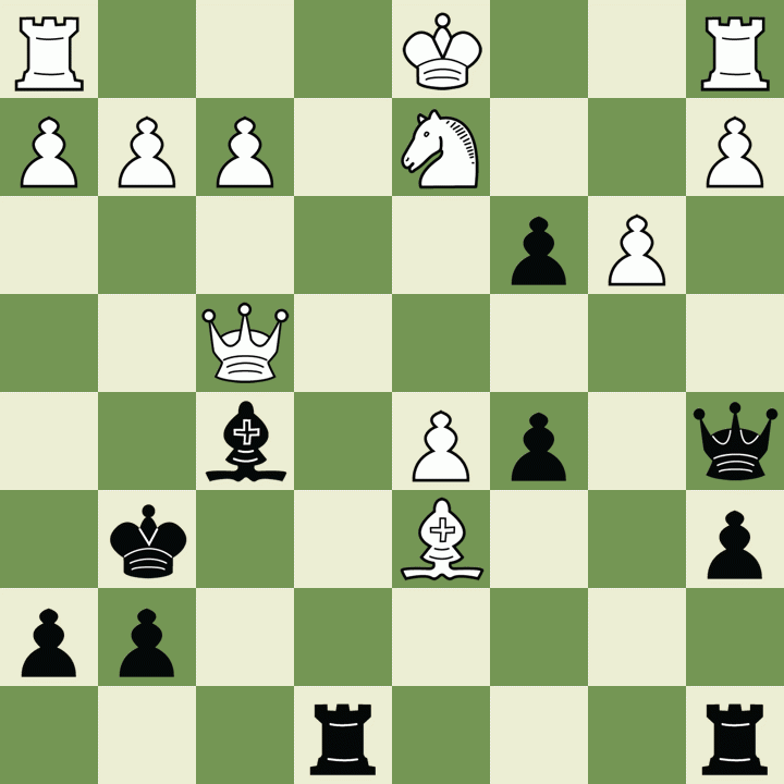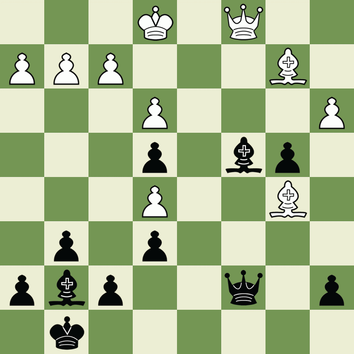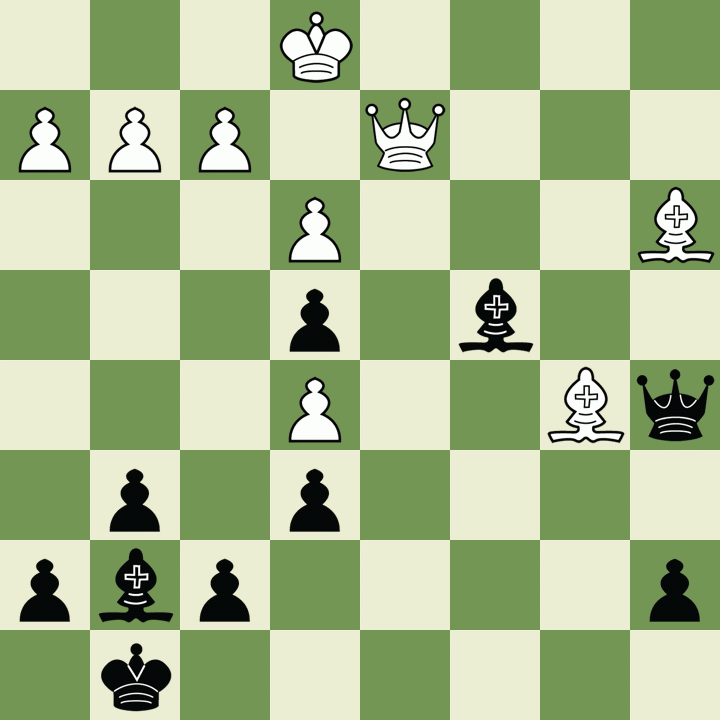 Kd2 a5 5. Kc2 Bd3+ 6. Kd2 Ba6 7. Kc2 Qc7 8. Qe1 Bd3+ 9. Kb2 Be7 10. Bc2 Qxh2 11.